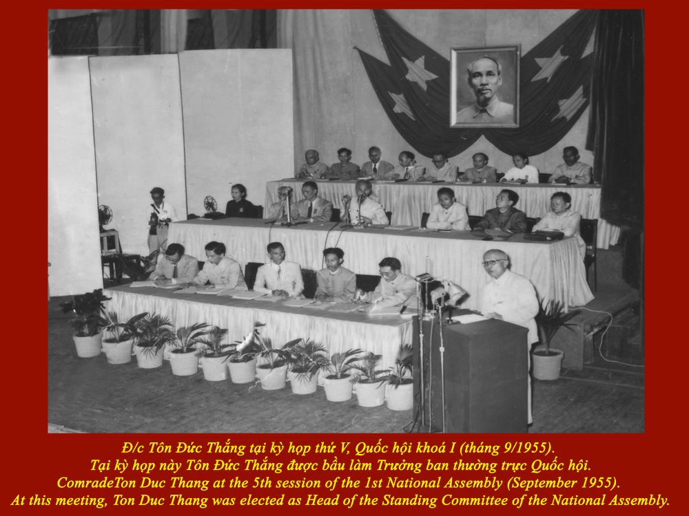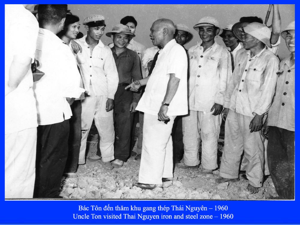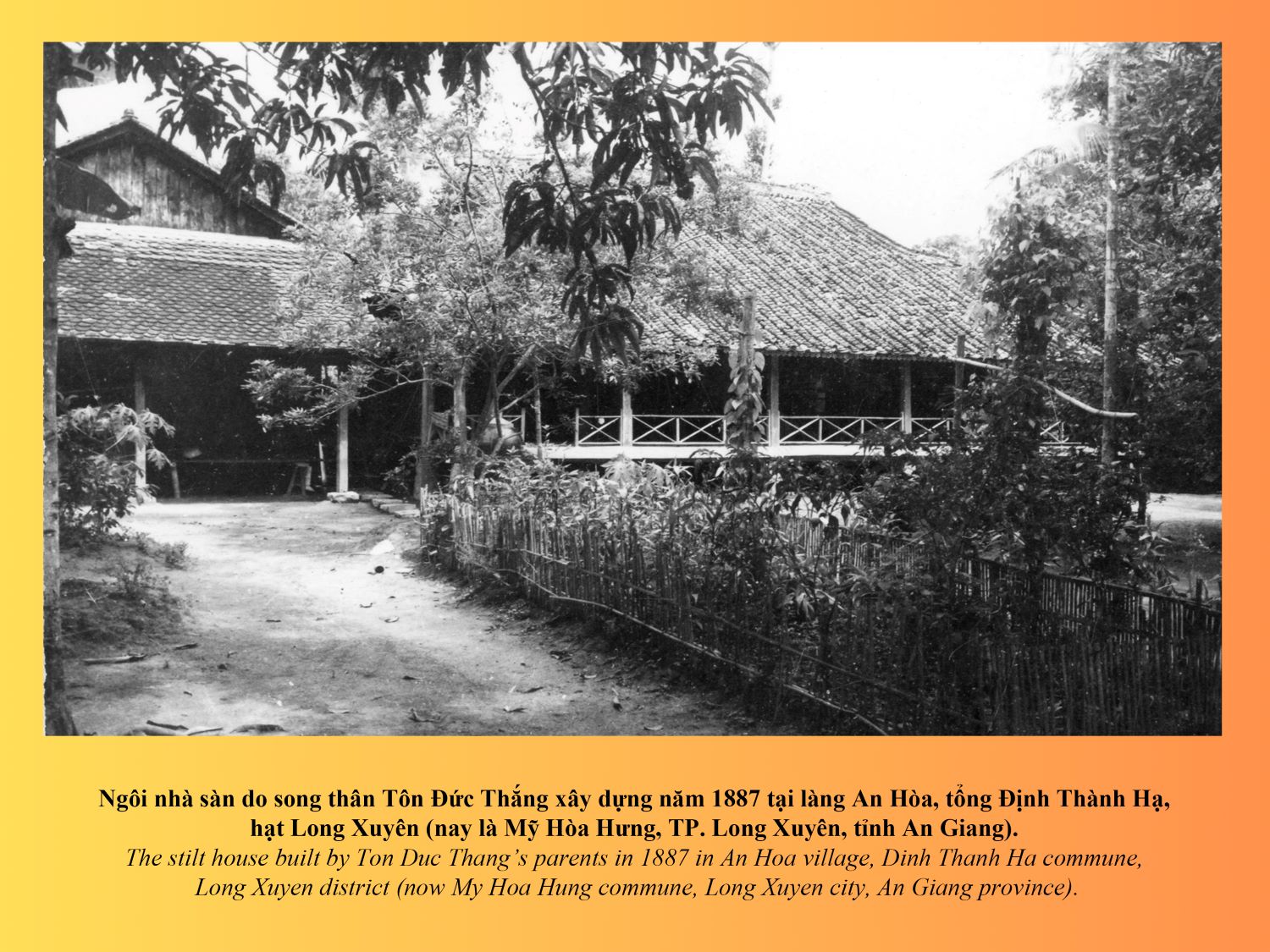 Ngôi nhà này do song thân của Bác Tôn xây dựng vào năm 1887. Sau, được người em trai thứ tư của Bác là Tôn Đức Nhung có sửa chữa một lần vào năm 1932 (nhưng vẫn giữ y theo lối kiến trúc hình chữ Quốc (nho), mái lợp ngói ống, sàn lót ván, ngang 12 mét, dài 13 mét, rộng hơn 150m2. Bên trong, ngôi nhà vẫn còn lưu giữ hai bức ảnh bán thân song thân Bác là ông Tôn Văn Đề và bà Nguyễn Thị Dị, một tấm ảnh Bác Tôn chụp năm 18 tuổi, và một ảnh chụp tại chiến khu Việt Bắc lúc Bác làm Chủ tịch Mặt trận Liên Việt, gửi về gia đình có chữ ký với dòng chữ ở phía sau “Kính biếu mẹ già và mấy em. Ngày 24 tháng 7 năm 1951”.