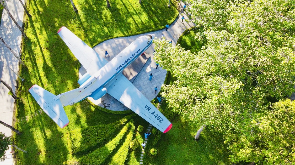 Ngay khi đến với Khu lưu niệm, du khách có thể dễ dàng nhận thấy chiếc chuyên cơ đang được trưng bày nổi bật ngoài trời, ngay trước mặt tiền khuôn viên. Đây không phải là mô hình phục dựng, mà là hiện vật lịch sử nguyên bản đã được đem về trưng bày tại Khu lưu niệm.